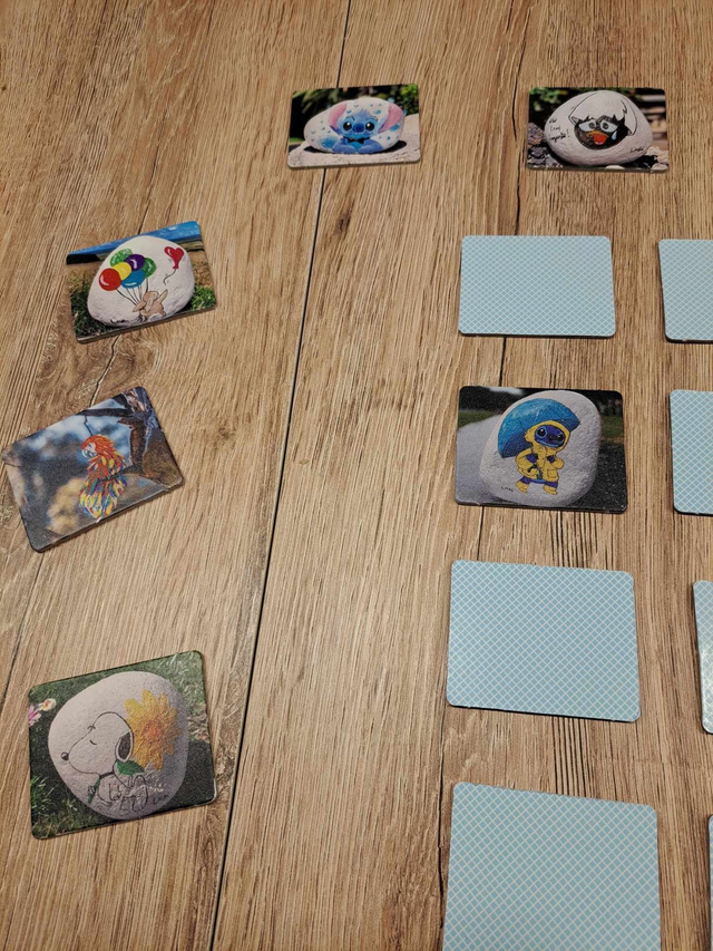 J’ai conçu ce jeu de mémoire avec les photos de mes peintures sur galets. Une bonne idée de cadeau original, pour permettre à l'enfant de se divertir de façon ludique, loin des écrans.